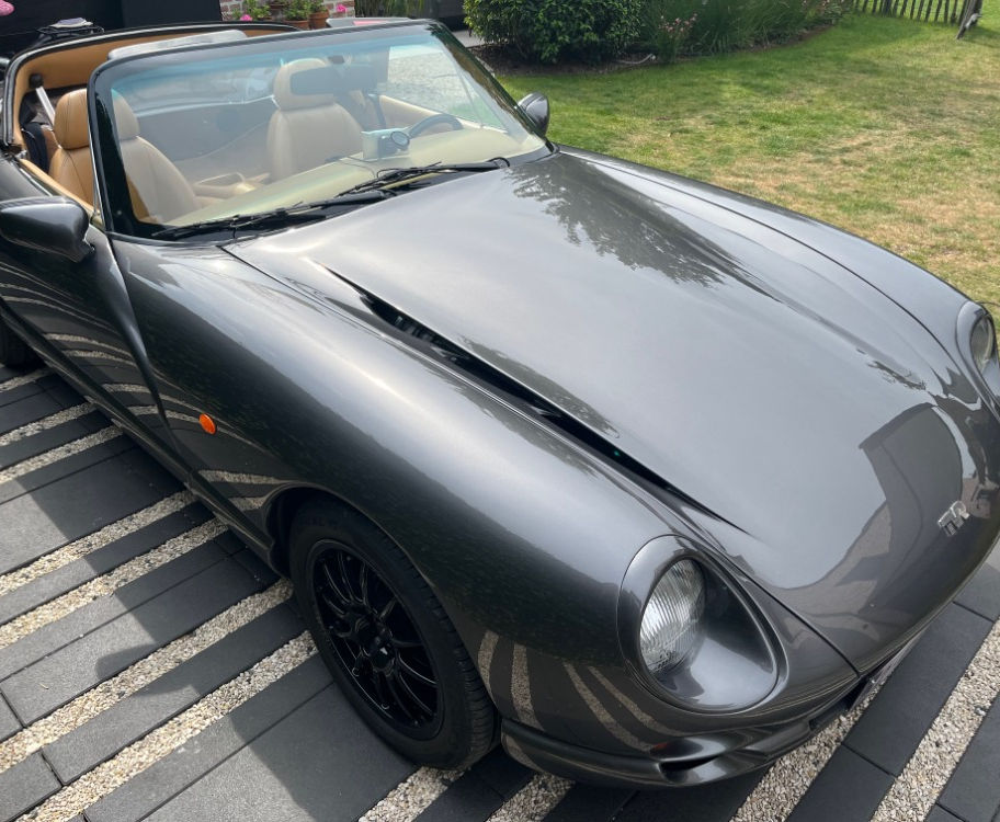 In prachtige kleuren combinatie uitgevoerde TVR Chimaera 4L.